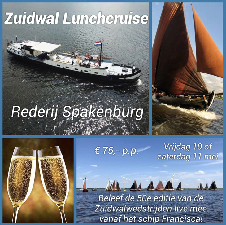 Cruise met ons mee tijdens de Zuidwalwedstrijden op ons schip Francisca!